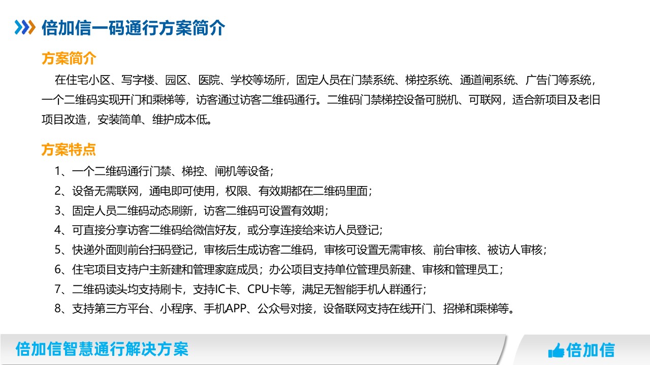 - 下一篇:倍加信一碼通、一臉通、一卡通、機器人 門禁、梯控通行解決方案 2023/5/26