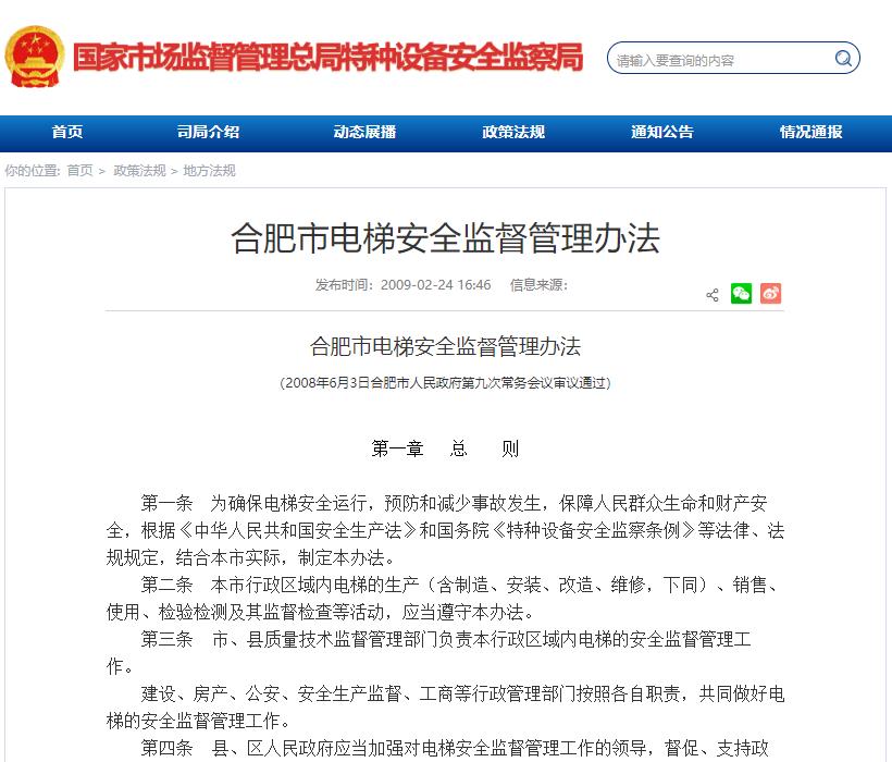 《合肥市電梯安全監督管理辦法》2008年6月3日合肥市人民政府第九次常務會議審議通過