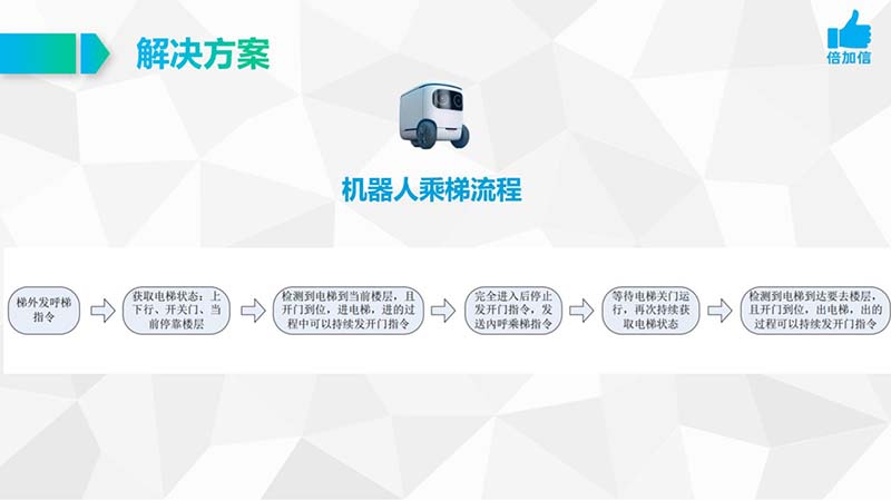 機器人自主乘梯技術是未來建筑物運營的重要發展方向之一。隨著人工智能和機器人技術的不斷發展,機器人自主乘梯技術將越來越成熟和普及。未來,機器人自主乘梯技術還將不斷完善和提升,例如增加倍加信人 臉 識 別等功能,進一步提高安全性和用戶體驗。