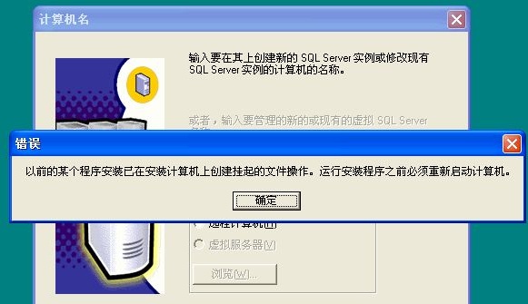 安裝SQL SERVER 2000 安裝時候提示被掛起,如何操作?