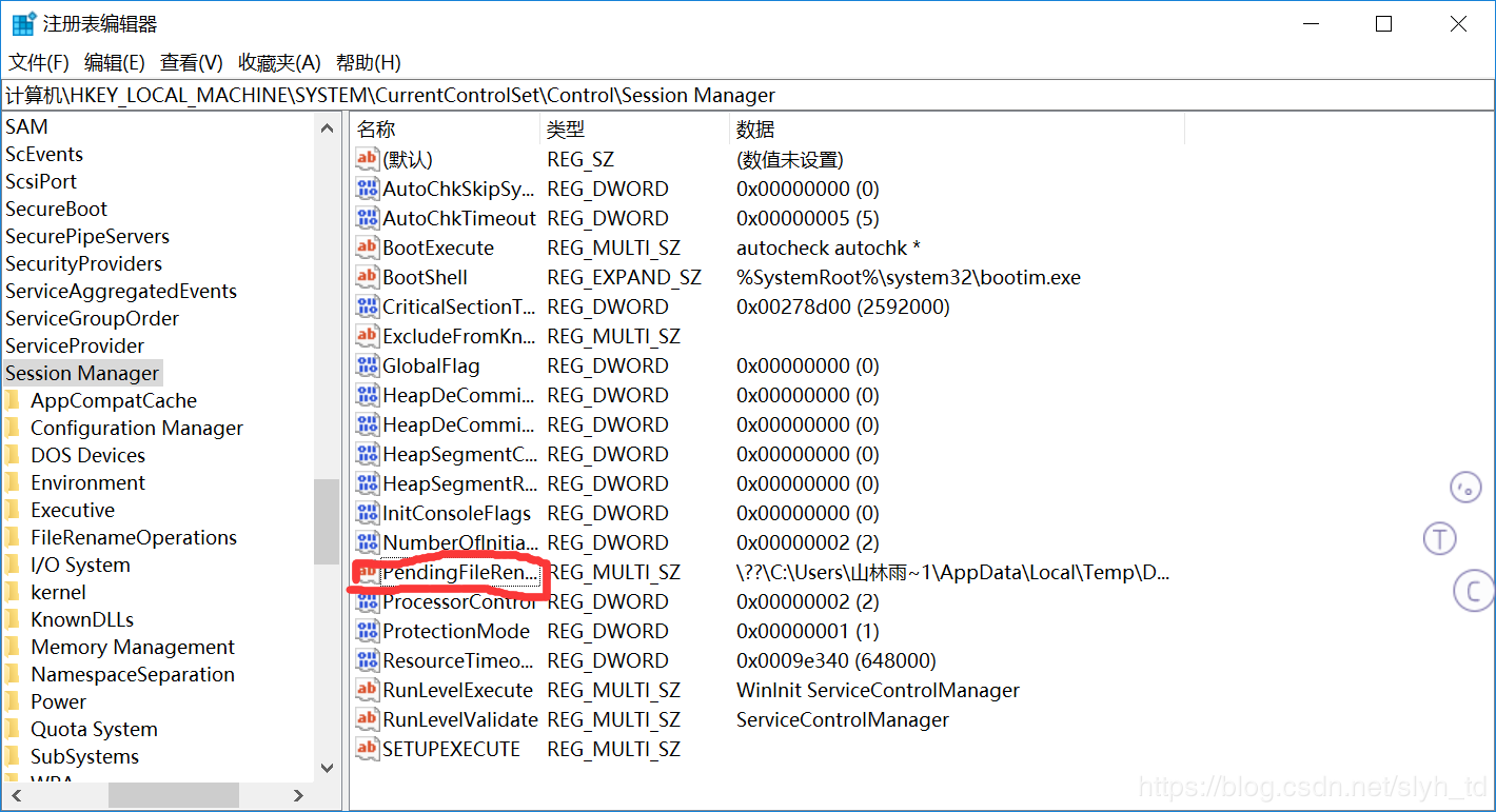 “HKEY_LOCAL_MACHINE \ SYSTEM \ CurrentControlSet \ Control \ Session Manager”,在右側(cè)找到“PendingFileRenameOperations”刪除“PendingFileRenameOperations”