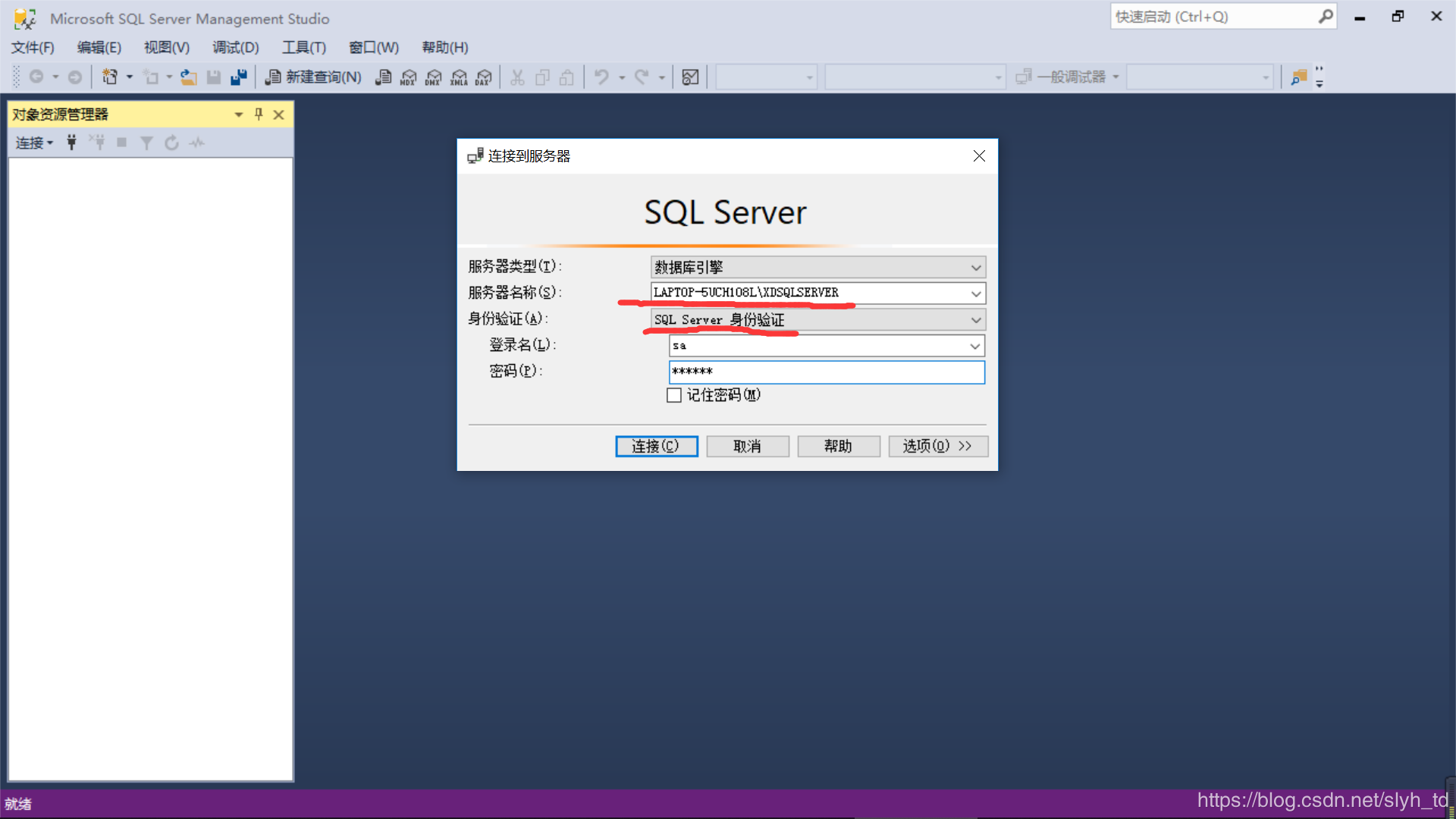 服務(wù)器名與上面的實例ID相對應(yīng),連接登錄