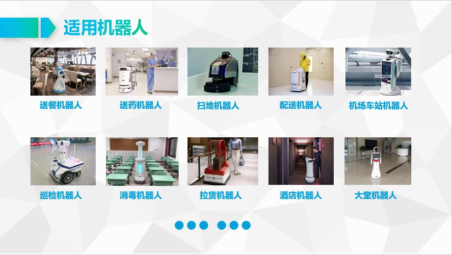 1、機器人替代人工越來越被廣泛應(yīng)用,如掃地機器人、服務(wù)機器人、送餐機器人、巡檢機器人、送藥機器人、消毒機器人等;