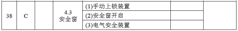 (20)將4.3項的項目及類別調整為:“安全窗 C”,檢驗內容與要求調整為: