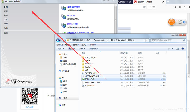 打開SQLFULL_x64_CHS文件夾,雙擊SETUP應用程序,開始安裝SQL