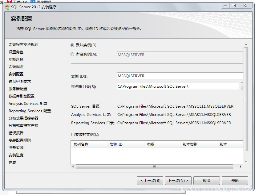 默認實例,可以更改文件夾位置